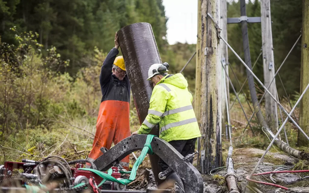 The new foundation system is capable of large scale foundation work. The unique foundation drilling system is quickly drilled at each pole location by certified Comrod personnel, and it is possible to drill multiple foundations at the same time.